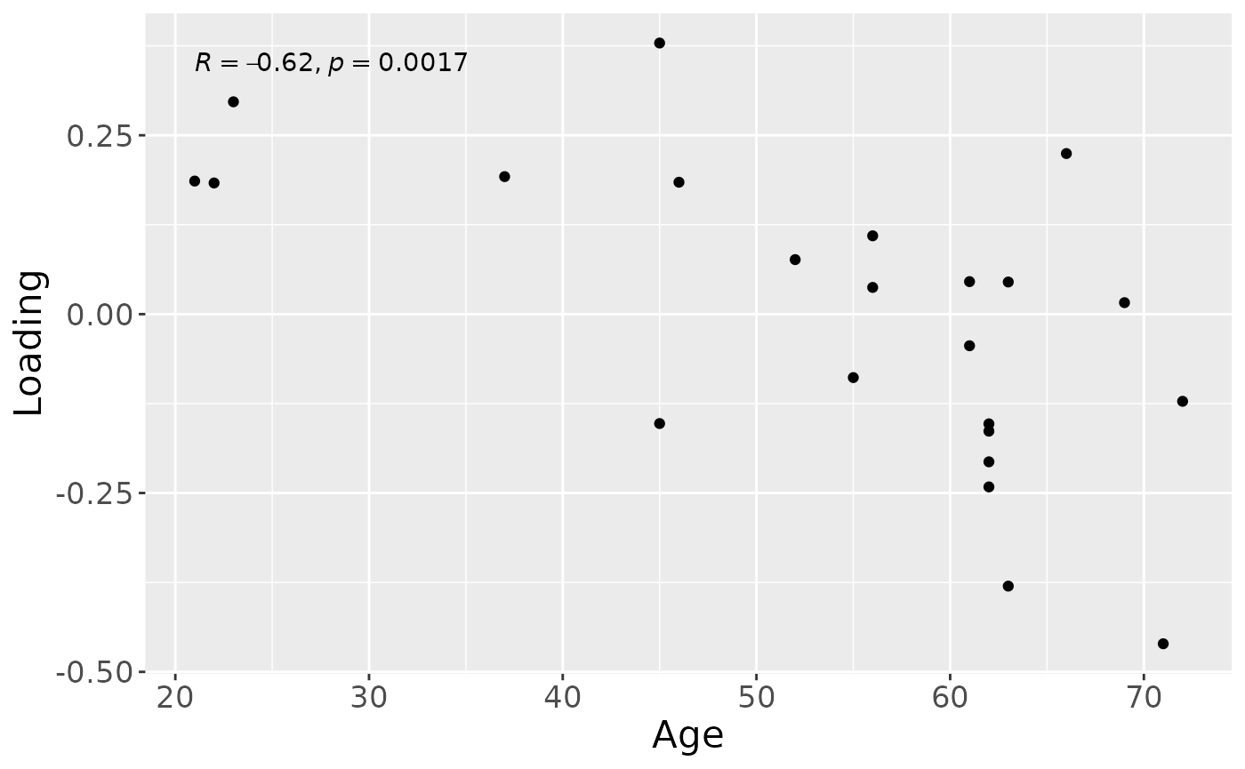 result = lm(transformedSubjectLoadings ~ Gender + Age + PainS_NopainA, data=metadata)